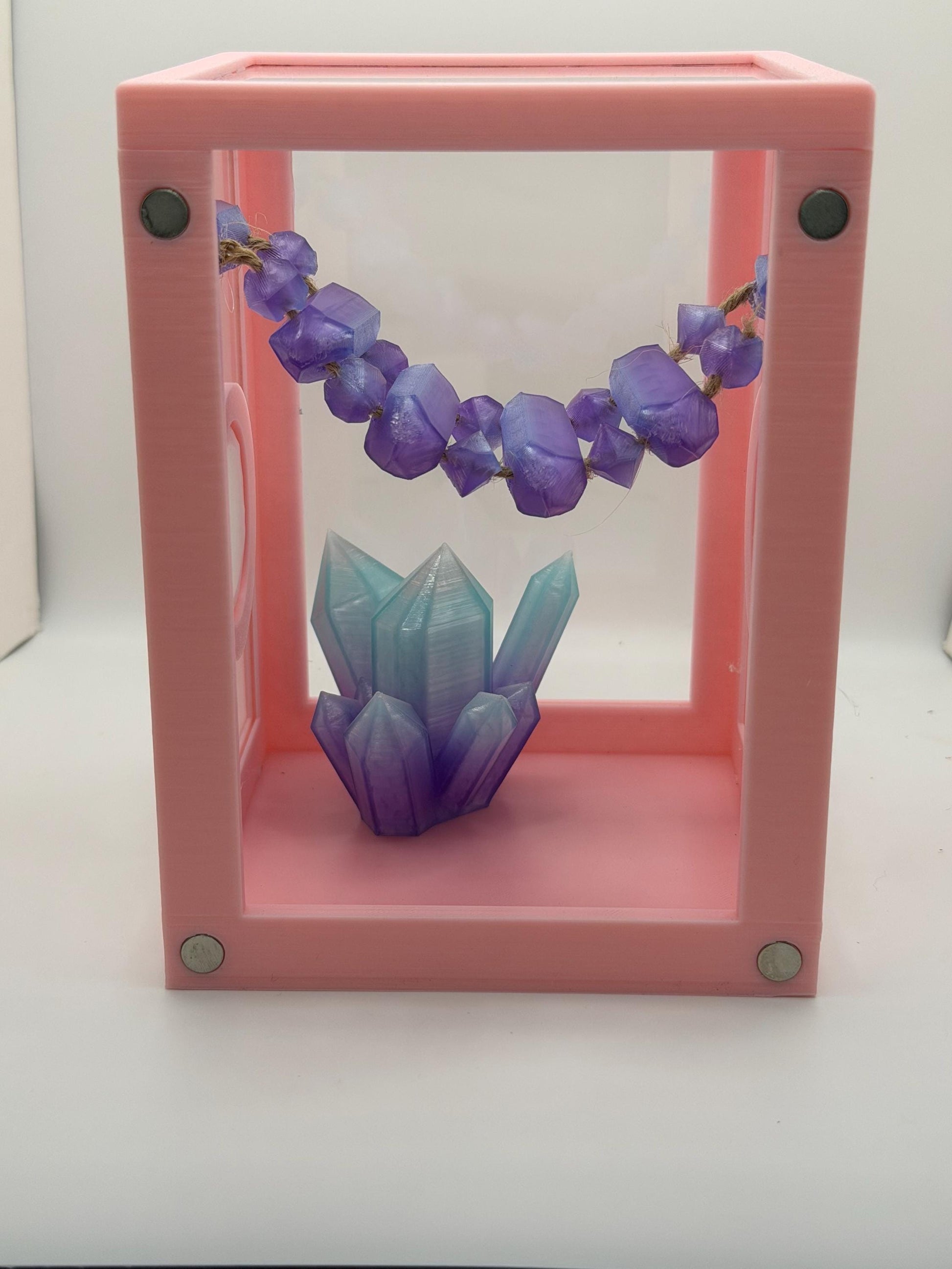 Bring a magical, gemstone-inspired look to your jumping spider’s home with this crystal-themed enclosure decor set. Designed to create a soft, dreamy aesthetic, this setup features faceted crystal elements and a hanging crystal strand that adds depth, texture, and enrichment without overwhelming the space.