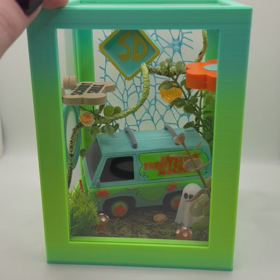 Give your jumping spider a groovy, retro-inspired home with this mystery-themed enclosure, packed with playful details, bold colors, and tons of personality. Designed with vertical climbing space and layered decor, this enclosure is both eye-catching and functional.